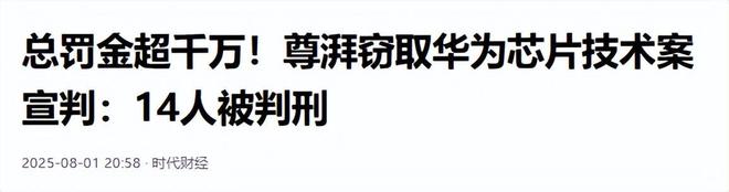 参考信源:封面新闻2025-08-01《尊湃窃取华为芯片技术案宣判:14人被判刑,总罚金超千万》