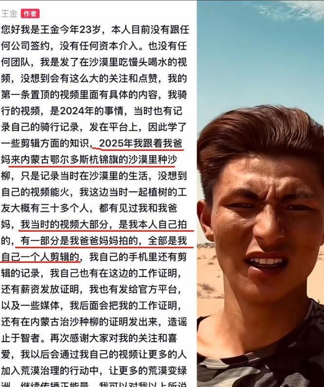 后面,王金也是晒出了自己在这里种植沙柳的务工证明,上面表示,他确实是这里的工人,这点没有假。