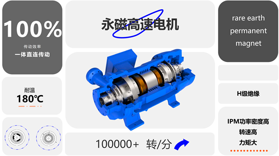 采用五自由度磁悬浮轴承系统,搭载11路高精度传感器,结合动态实时控制算法,实现转子悬浮精度达2微米,且通过电磁感应自主感知位置,无需物理接触。