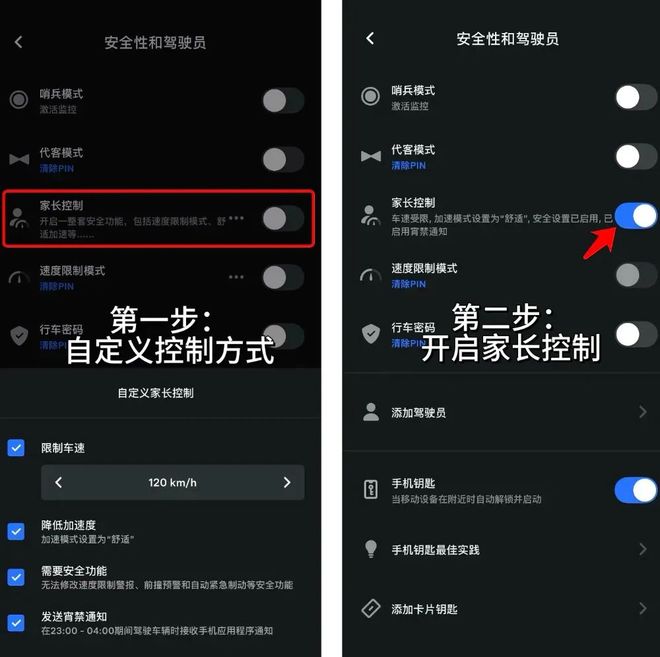 特斯拉的“马力锁”叫做“家长控制”,听名字就知道,控制权掌握在车主手中,就像iPhone或者儿童手表上的家长模式。